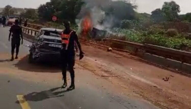 THIEYSENEGAL.com : Un grave accident de la circulation s’est produit ce dimanche sur l’autoroute à péage, à hauteur de Sédima, impliquant deux véhicules. L’un des véhicules a pris feu à la suite de l’impact, provoquant une scène spectaculaire.