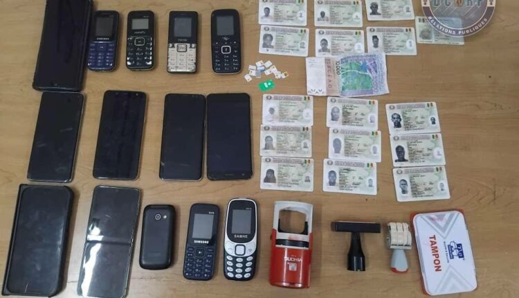La série de perquisitions menées dans leurs résidences respectives a permis la saisie de six fausses cartes d’identité, d’une importante quantité de cartes SIM destinées aux opérations frauduleuses, d’un faux billet de 10 000 francs CFA, ainsi que de cachets administratifs falsifiés servant à la fabrication de documents contrefaits.
