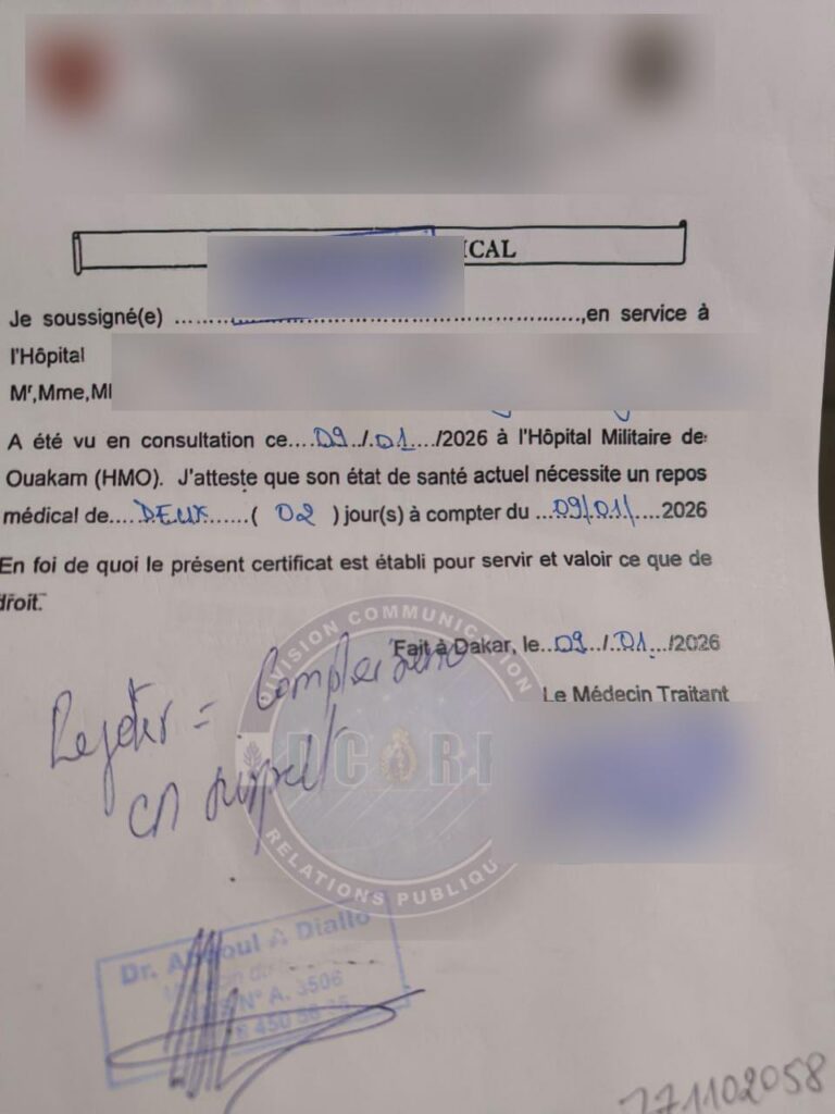 Selon des sources proches du dossier, l’affaire a été déclenchée le 25 février 2026, après un signalement faisant état d’un individu se présentant comme médecin. L’homme délivrait des certificats médicaux revêtus de l’en-tête d’un établissement hospitalier de la place, alors qu’aucune trace de son inscription n’y figurait.